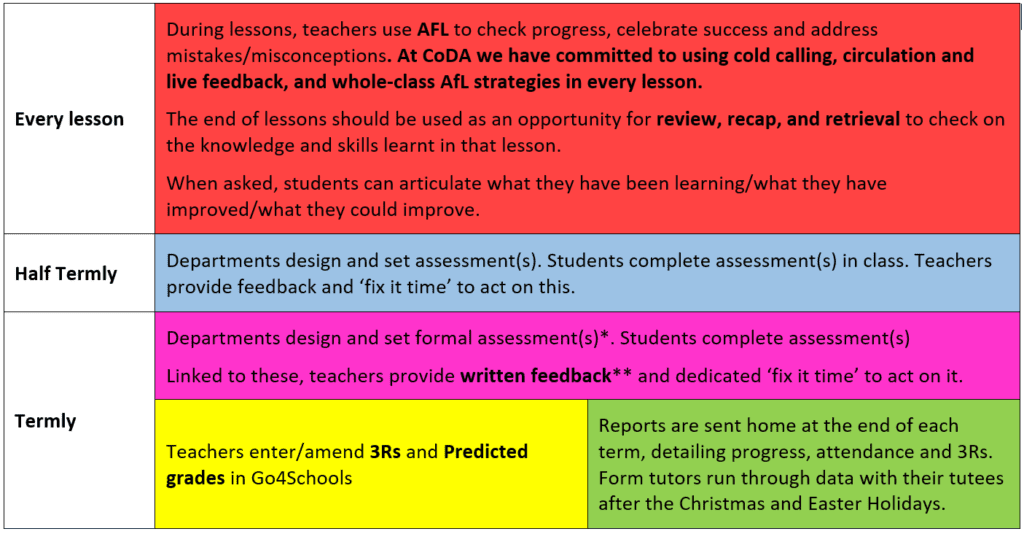 The Assessment, Feedback and Reporting expectations at CODA;